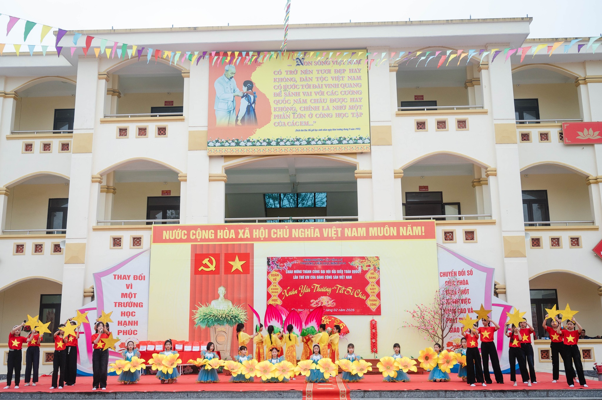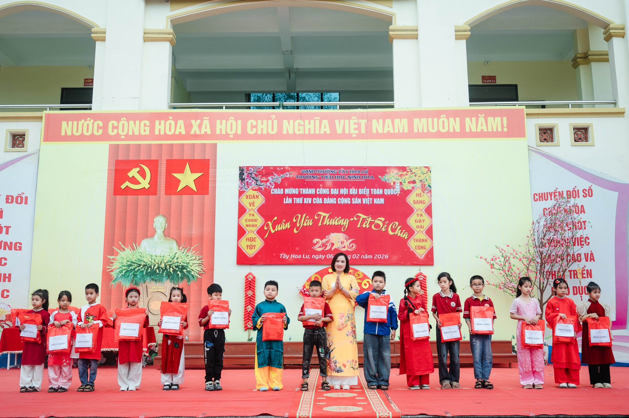 Sáng ngày 06/02/2026, Trường Tiểu học Ninh Hòa đã tổ chức Hoạt động trải nghiệm “Xuân yêu thương – Tết sẻ chia” trong không khí vui tươi, ấm áp, chào đón Tết Nguyên đán cổ truyền của dân tộc và chào mừng thành công Đại hội đại biểu toàn quốc lần thứ XIV của Đảng.