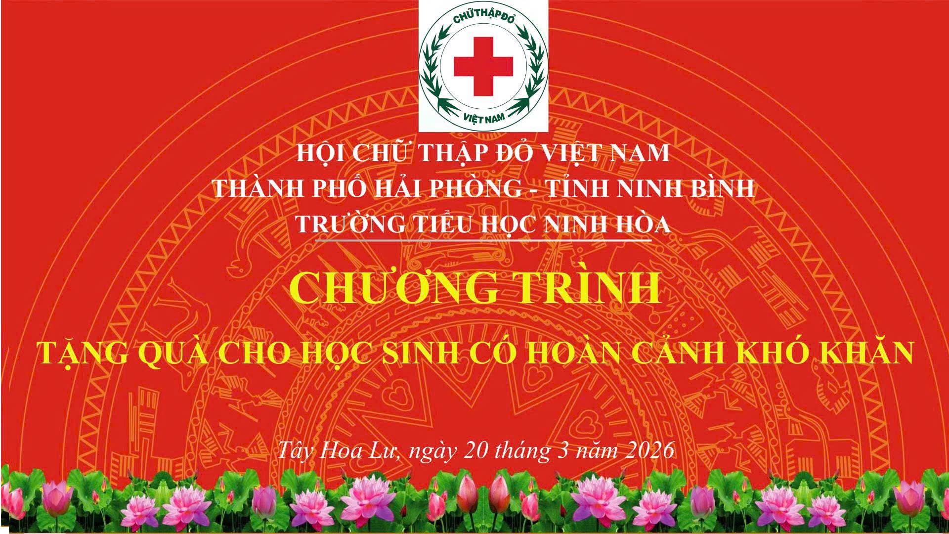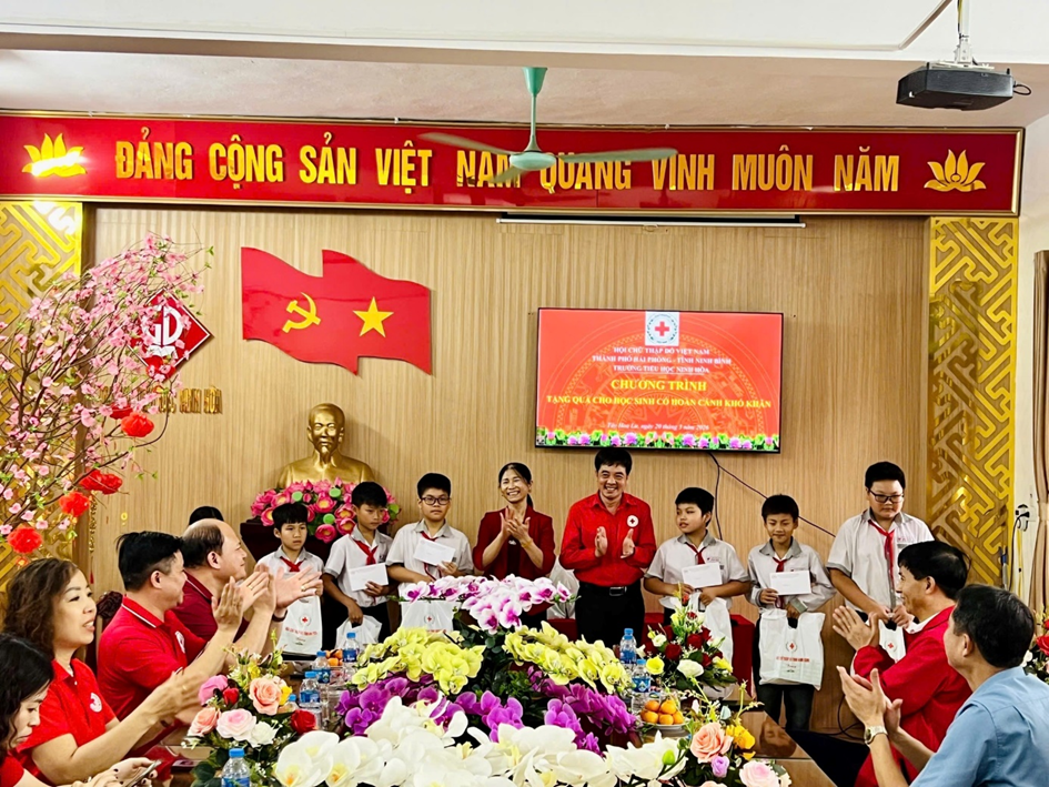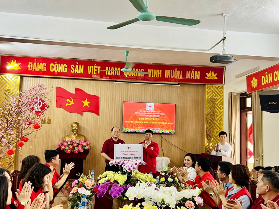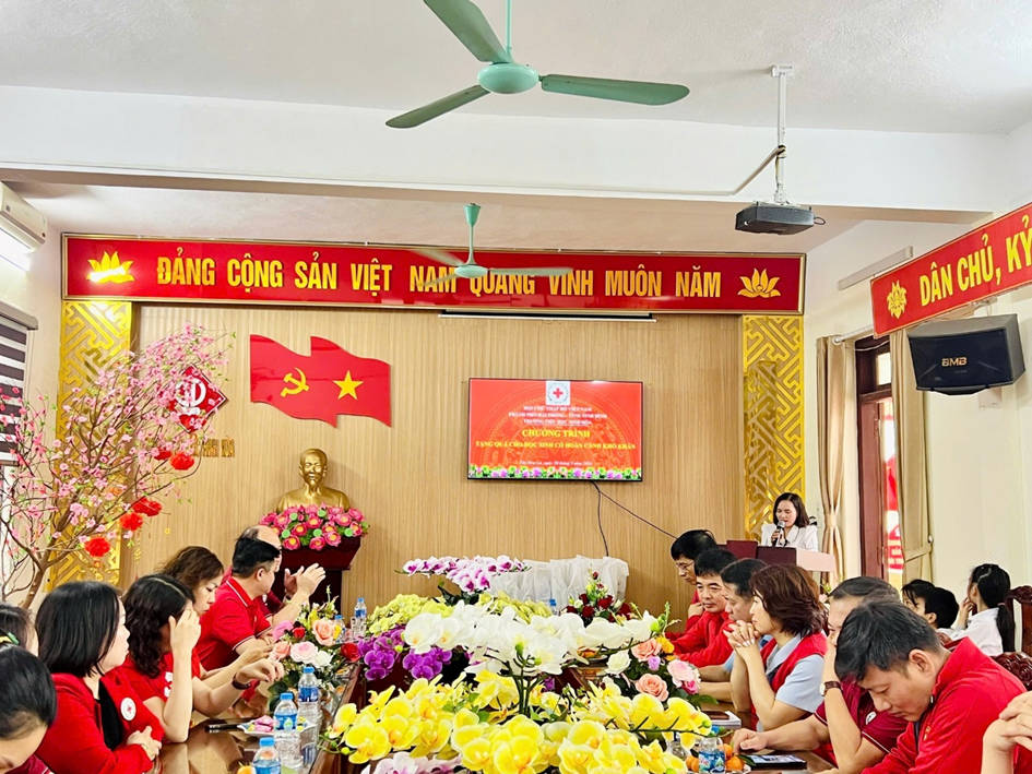Chương trình do Hội Chữ thập đỏ thành phố Hải Phòng phối hợp cùng Hội Chữ thập đỏ tỉnh Ninh Bình tổ chức, với sự tham gia của các đồng chí lãnh đạo, đại biểu, thầy cô giáo và toàn thể các em học sinh nhà trường.