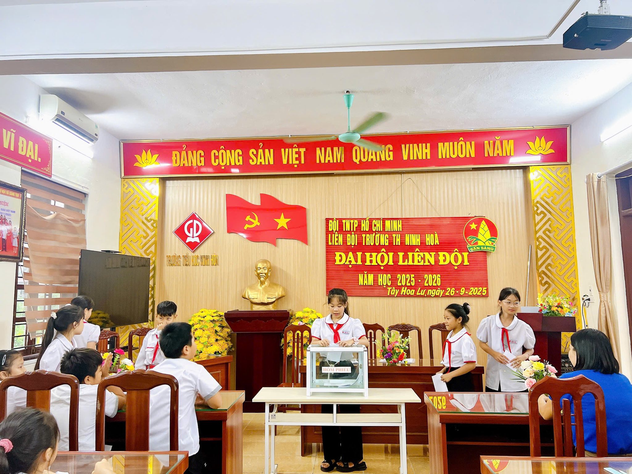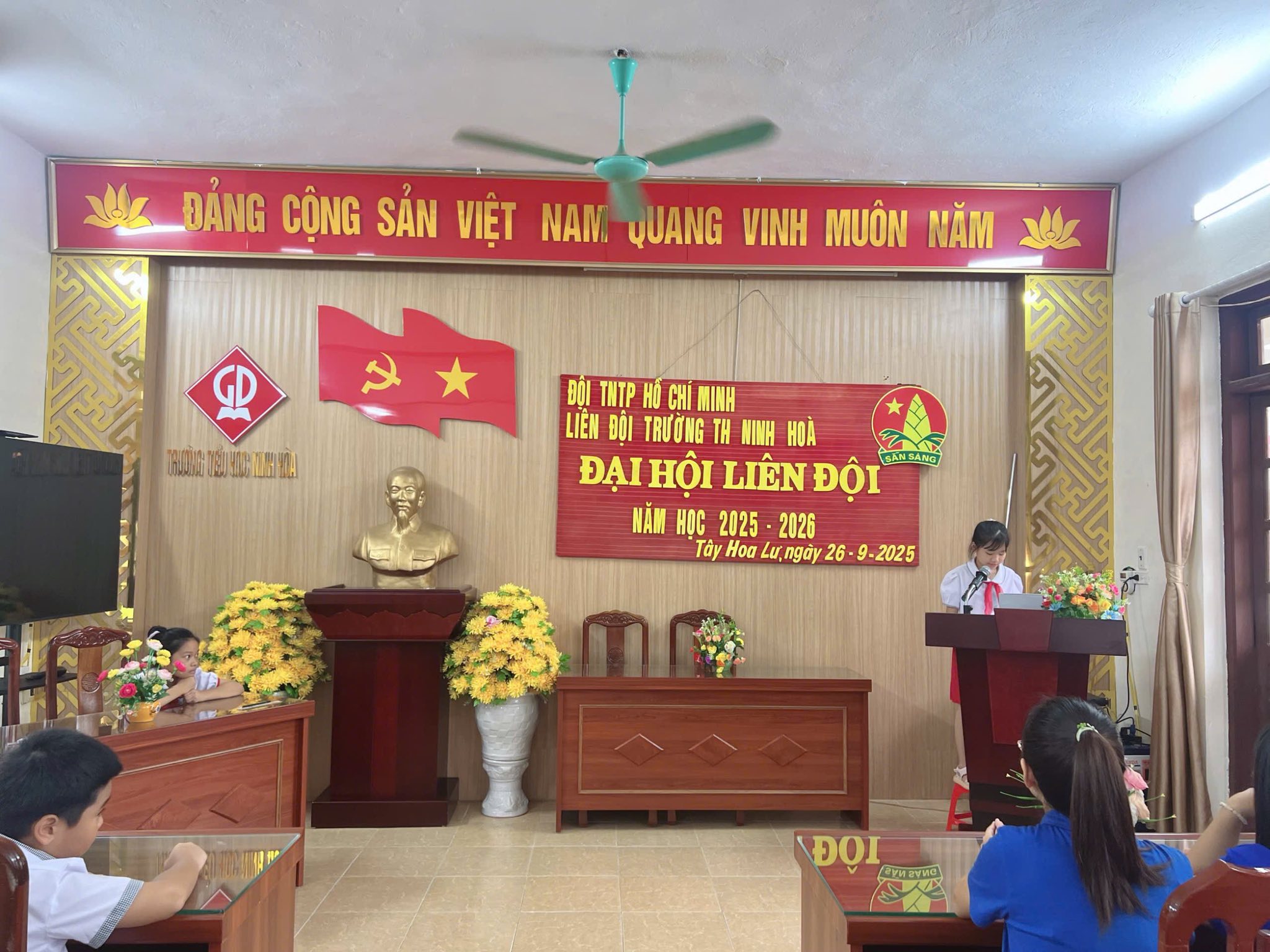 Thực hiện chương trình công tác Đội và phong trào thiếu nhi năm học 2025 – 2026, chiều ngày 26 tháng 9 năm 2025, Liên đội trường Tiểu học Ninh Hòa đã long trọng tổ chức Đại hội Liên đội. Đại hội diễn ra trong không khí trang trọng, dân chủ và sôi nổi, là một sự kiện chính trị quan trọng của các em đội viên trong toàn trường.