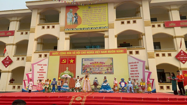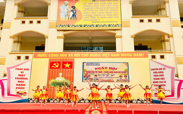 ✨ Chương trình văn nghệ diễn ra sôi nổi với nhiều tiết mục đặc sắc do các em học sinh biểu diễn. Những bài hát, điệu múa vui tươi đã mang đến không khí rộn ràng cho ngày hội. Các tiết mục được chuẩn bị chu đáo, thể hiện sự tự tin và năng khiếu của học sinh.