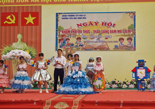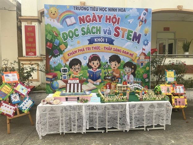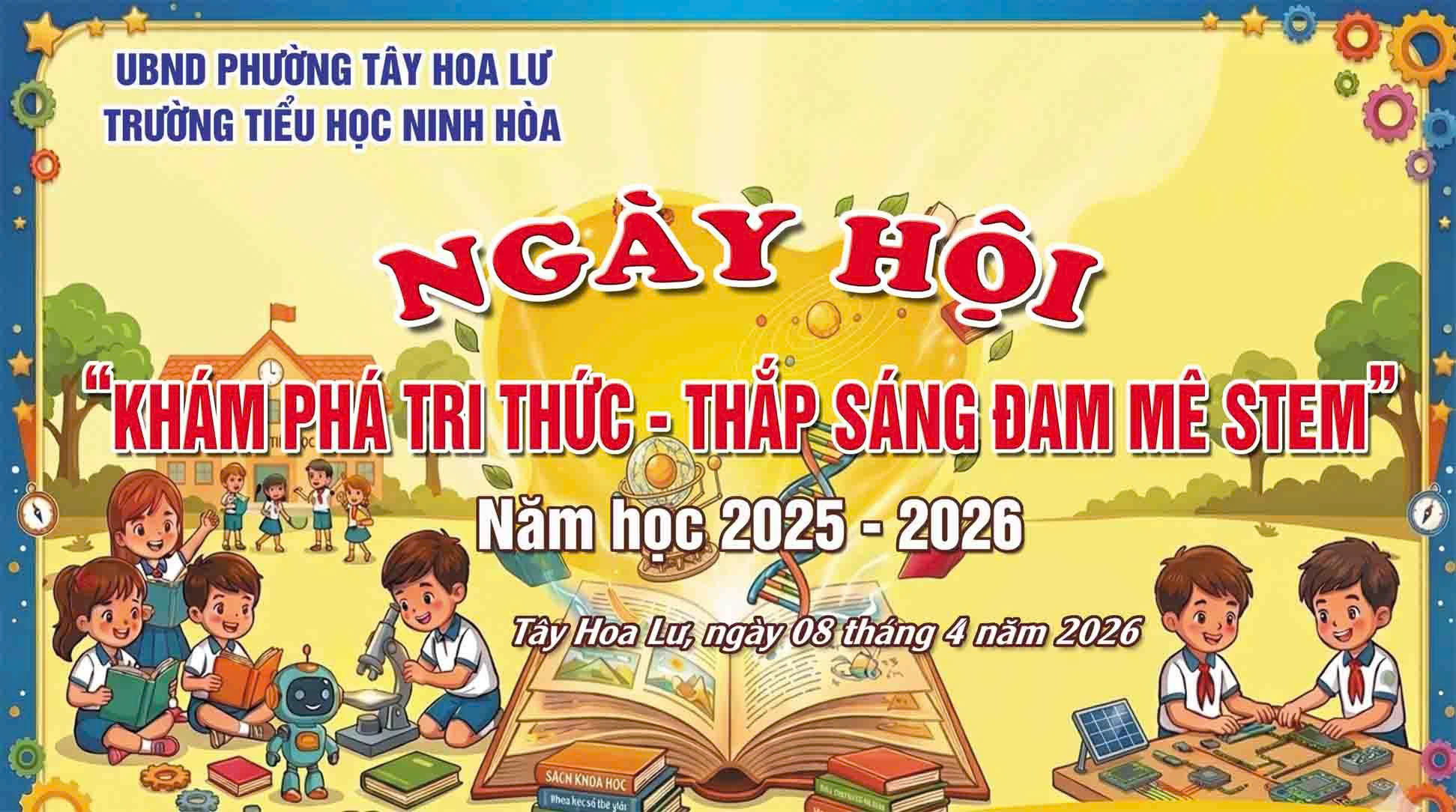 Trong không khí thi đua sôi nổi chào mừng các ngày lễ lớn, sáng ngày 08/4/2026, Trường Tiểu học Ninh Hòa (phường Tây Hoa Lư) đã tổ chức thành công chuyên đề “Ngày hội Sách và STEM” với chủ đề “Khám phá tri thức – Thắp sáng đam mê STEM”.