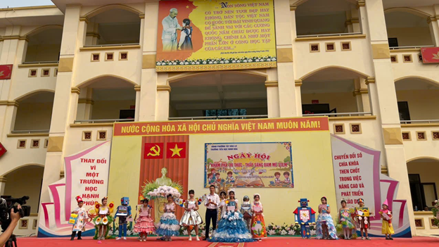 👗 Các em học sinh đã mang đến phần trình diễn thời trang vô cùng ấn tượng với những bộ trang phục được sáng tạo từ nhiều chất liệu khác nhau như giấy, bìa, nhựa tái chế và vải. Mỗi bộ trang phục đều thể hiện ý tưởng độc đáo, gắn với thông điệp bảo vệ môi trường và phát huy tinh thần sáng tạo trong học tập. Những bước catwalk tự tin, hồn nhiên của các em đã làm cho sân khấu trở nên sôi động và đầy màu sắc. Không chỉ đẹp mắt, các trang phục còn cho thấy sự khéo léo và công sức chuẩn bị công phu của thầy cô và học sinh.