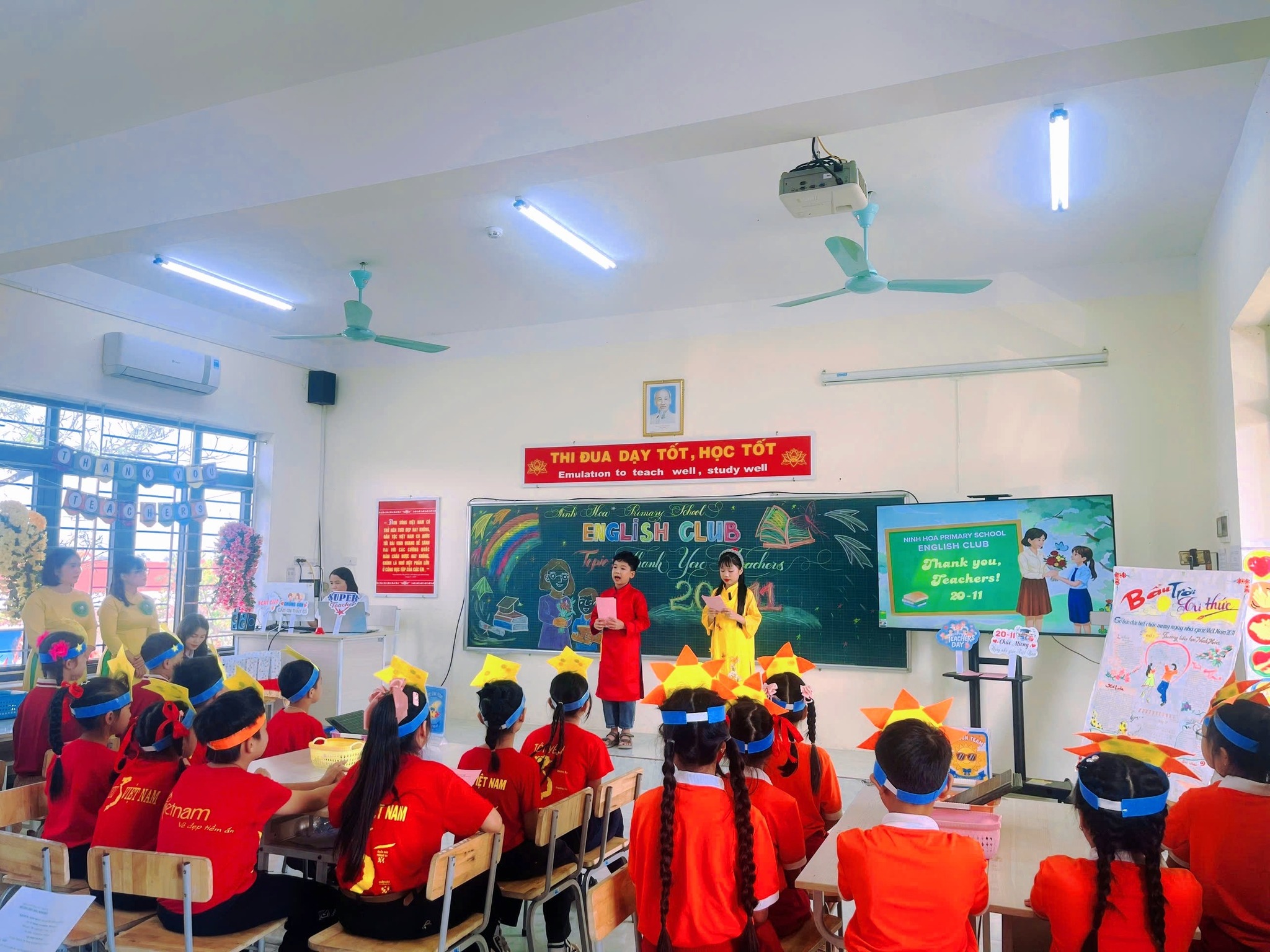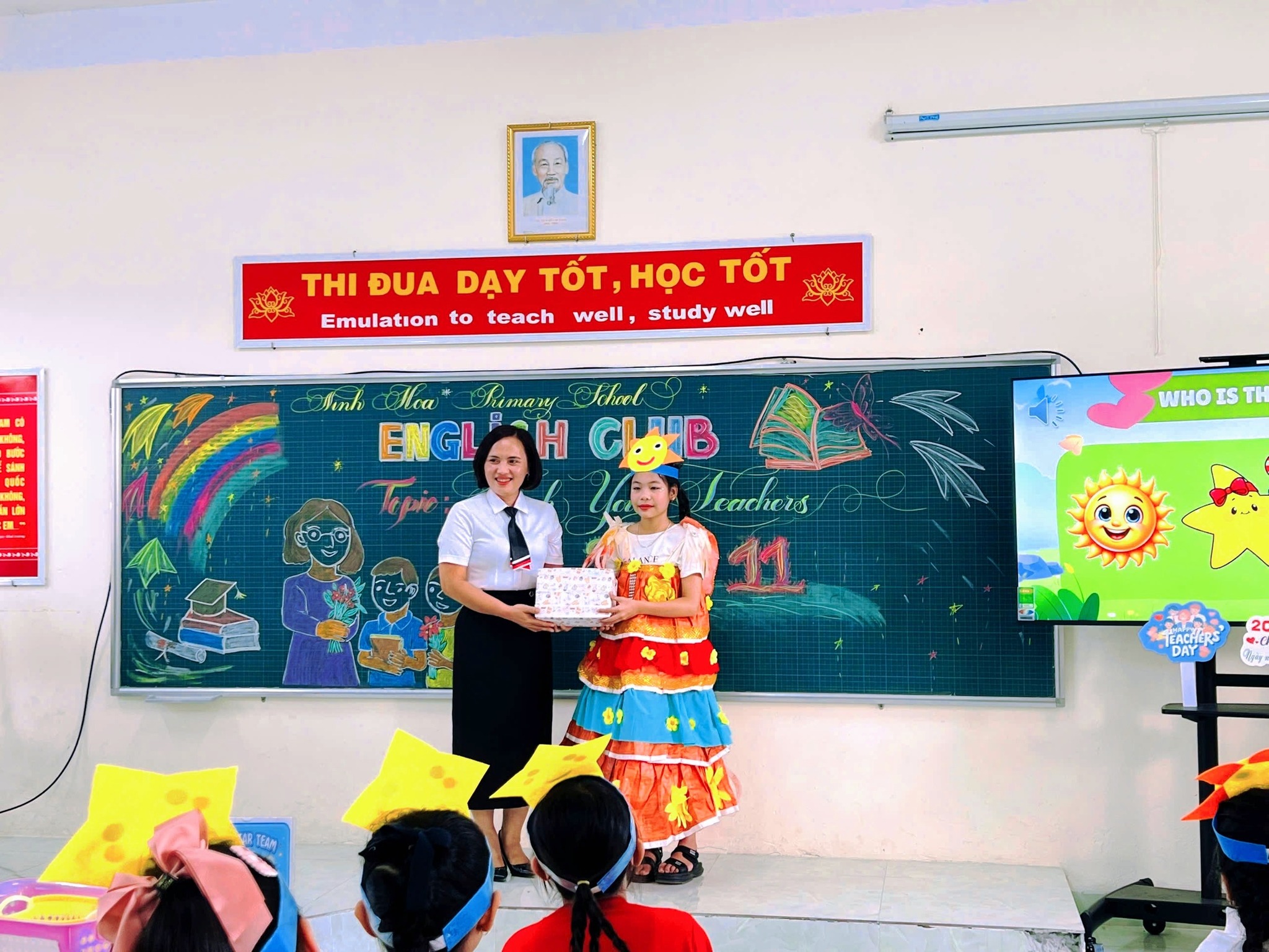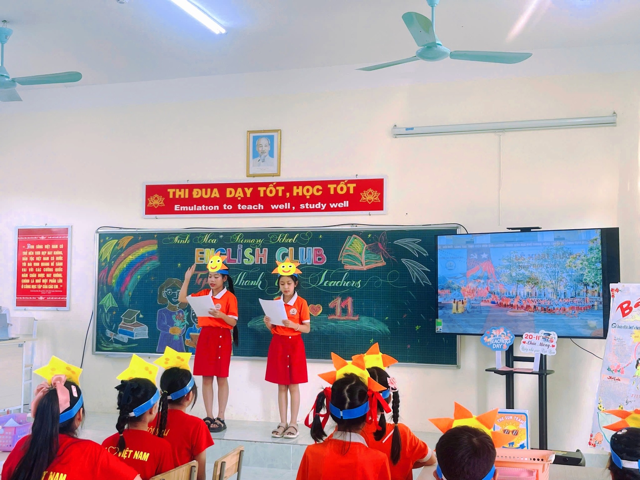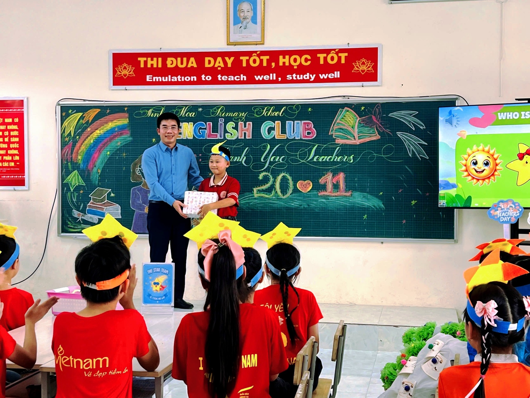 Chương trình đã mang đến cho học sinh không khí vui tươi, sôi nổi, giúp các em rèn luyện kỹ năng nghe – nói tiếng Anh, hiểu thêm ý nghĩa Ngày Nhà giáo Việt Nam 20/11, và bày tỏ lòng biết ơn sâu sắc tới các thầy cô giáo thông qua những phần thi và tiết mục hấp dẫn. Sau đây là một vài hình ảnh đẹp của buổi sinh hoạt: