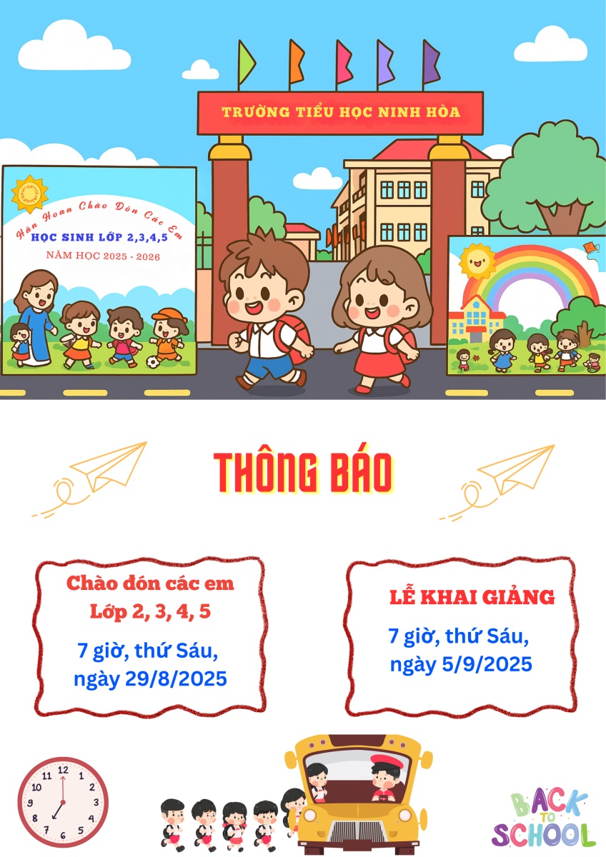 Một mùa hè rực rỡ đã khép lại, và giờ đây ngôi trường thân yêu lại sắp rộn ràng tiếng cười, tiếng nói của các em. Thầy cô rất vui mừng thông báo: