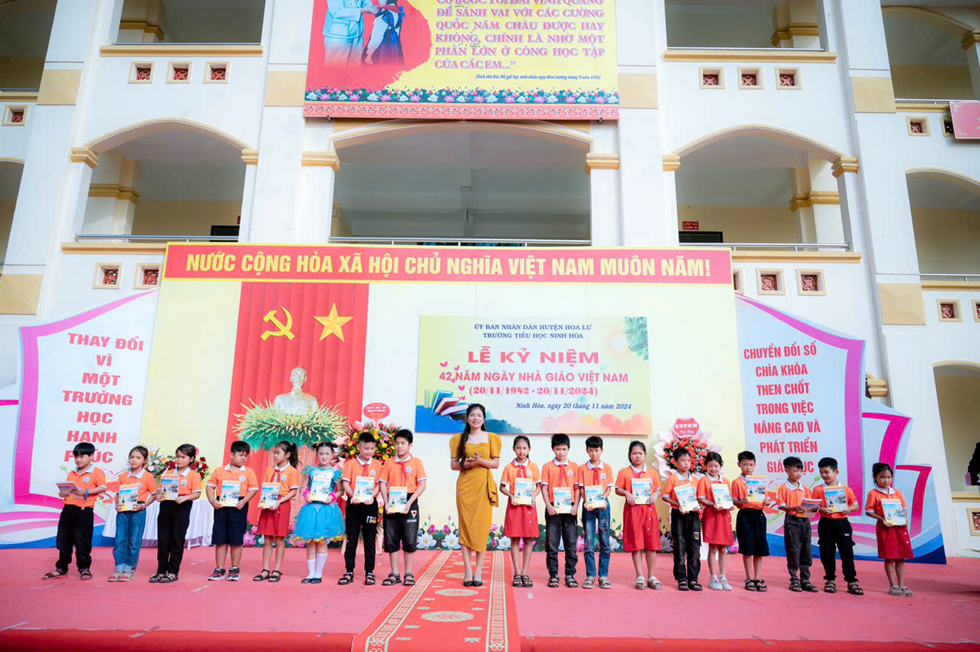 Hòa chung không khí phấn khởi và tự hào của cả nước, hôm nay, Trường Tiểu học Ninh Hòa long trọng tổ chức các hoạt động kỷ niệm 42 năm ngày Nhà giáo Việt Nam 20/11/1982 – 20/11/2024. Đây là dịp đặc biệt để chúng ta tôn vinh và tri ân những người thầy, người cô – những “người lái đò” thầm lặng, luôn tận tâm với sự nghiệp “trồng người”.