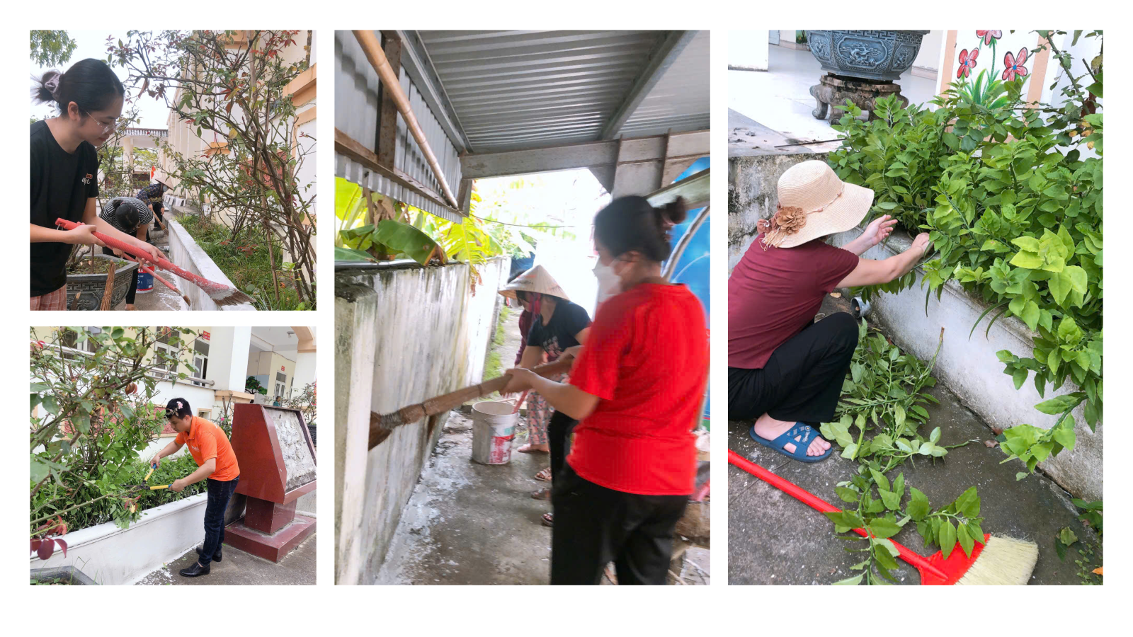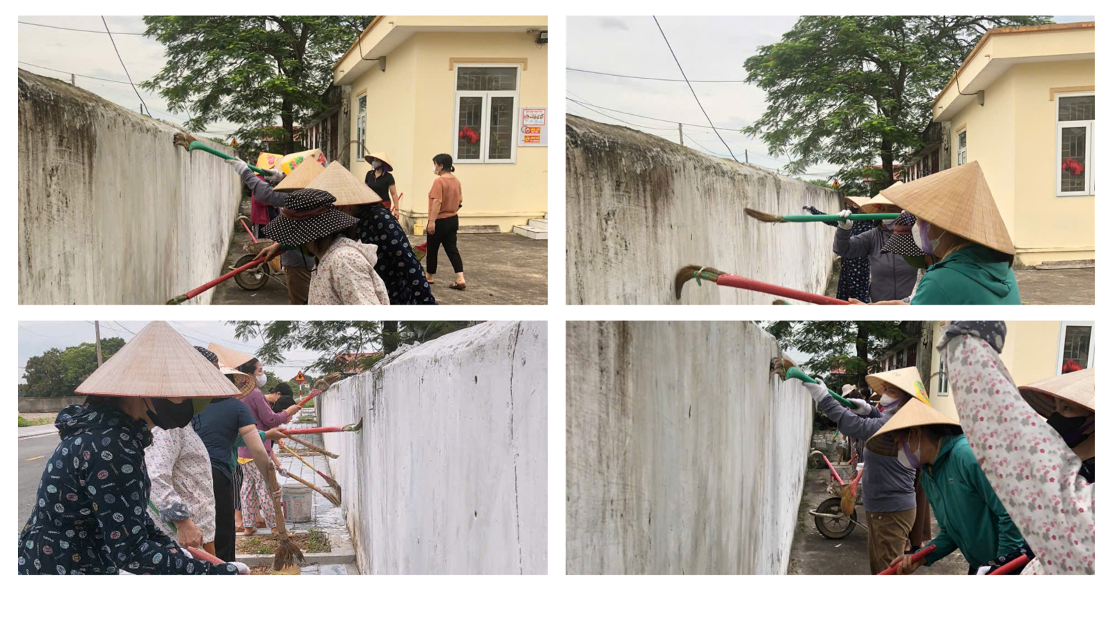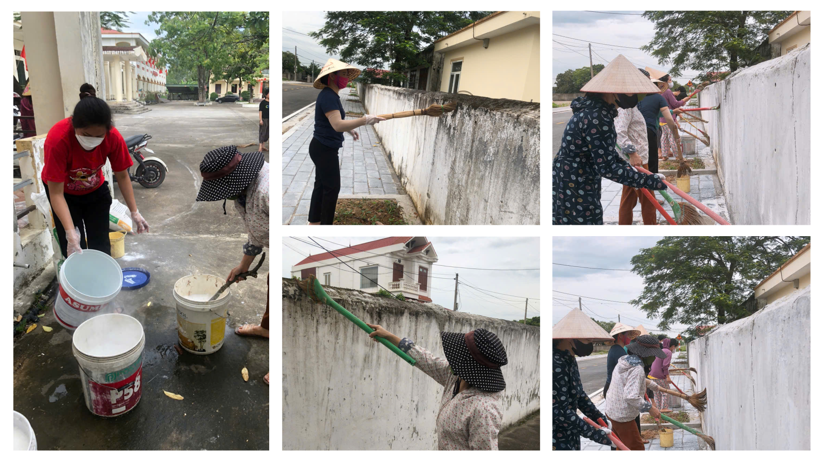 Ngay từ sáng sớm, các thầy cô giáo đã cùng nhau “xắn tay áo”, bắt đầu ngày mới bằng những việc làm thiết thực: quét vôi tường bao, bồn hoa và các gốc cây trong khuôn viên trường. Không khí lao động diễn ra thật rộn ràng, ấm áp tình đồng nghiệp, tiếng cười nói vui vẻ vang lên khắp sân trường, xua tan đi sự tĩnh lặng của những ngày hè.