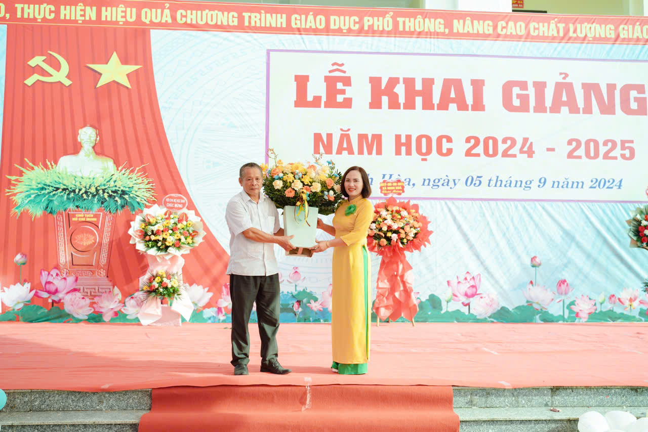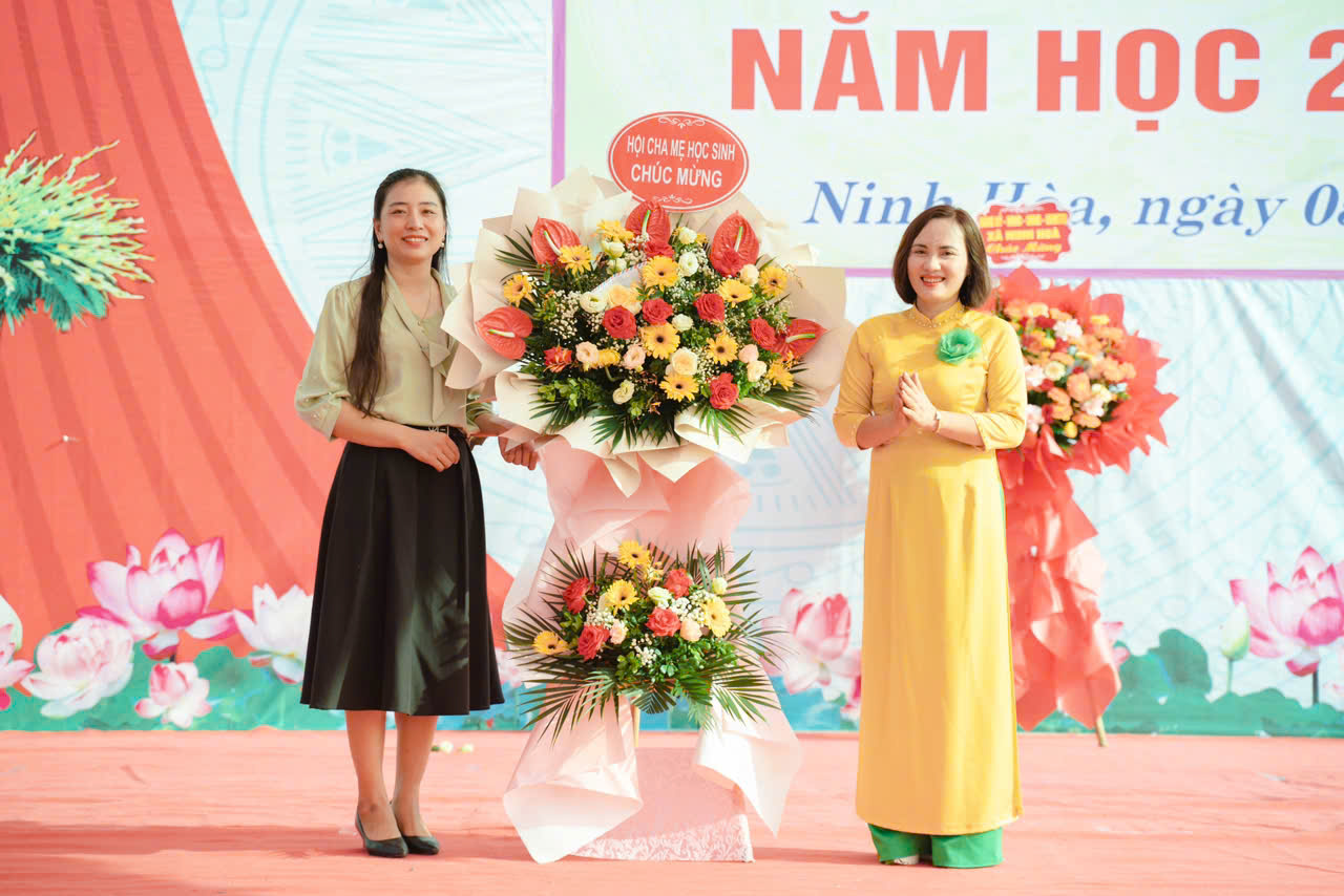 Tại buổi Lễ Khai giảng trang trọng này, nhà trường cũng vinh dự đón nhận những lẵng hoa tươi thắm của các ban ngành, đoàn thể, ban đại diện cha mẹ học sinh nhà trường,…
