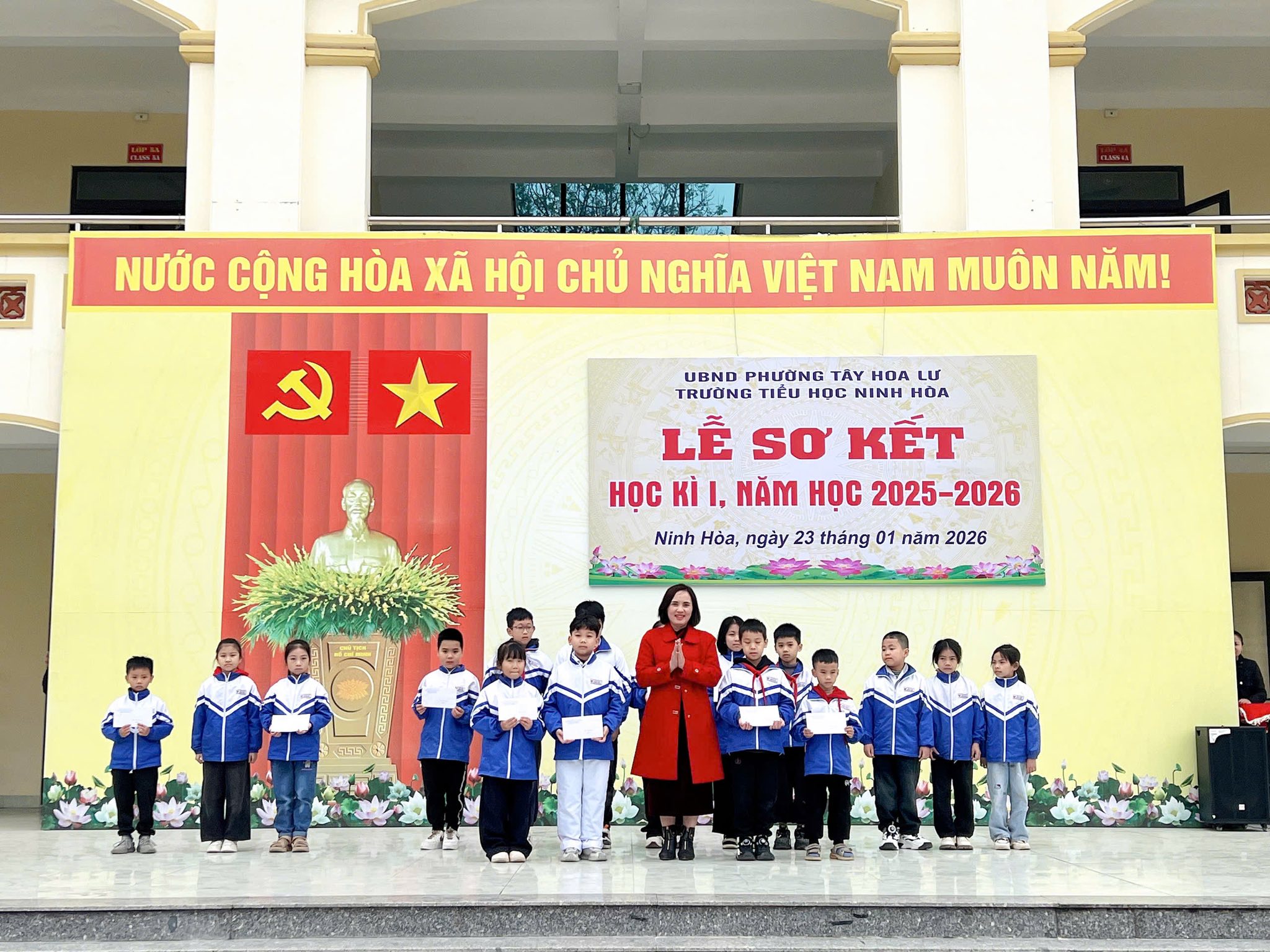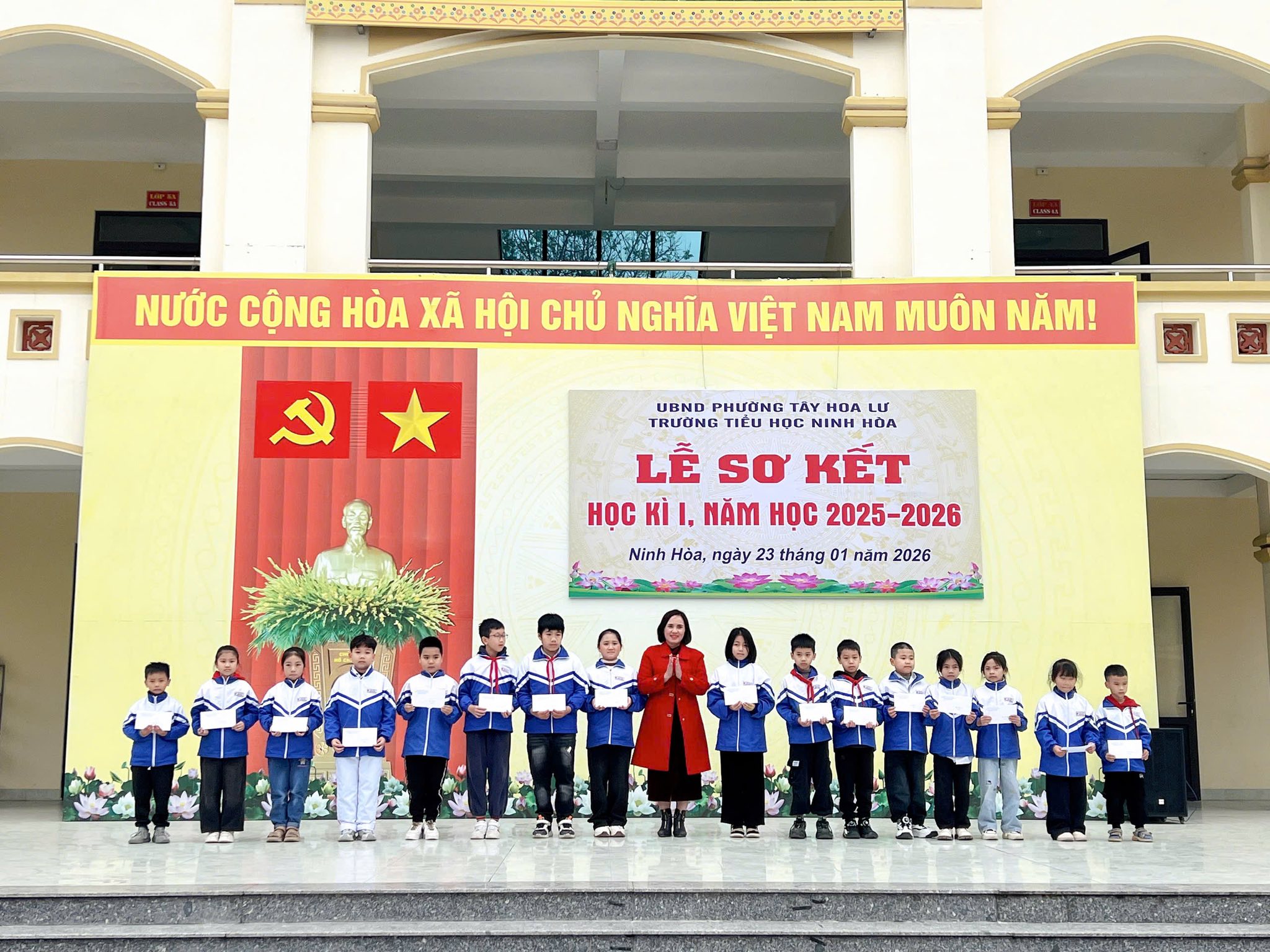 Bên cạnh đó, với tinh thần “tương thân tương ái”, nhà trường đã phối hợp với UBND phường Tây Hoa Lư trao tặng các suất học bổng cho học sinh có hoàn cảnh khó khăn. Đây là nguồn động viên kịp thời, giúp các em thêm tự tin và nghị lực để tiếp tục vươn lên dưới mái trường Ninh Hòa.